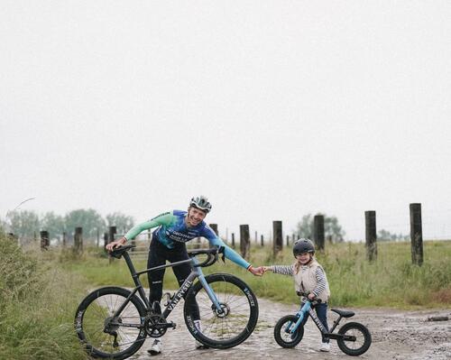 - Comprueba que el manillar esté bien apretado y alineado con el eje de la rueda sujetando la rueda entre las rodillas y jugando con el manillar.