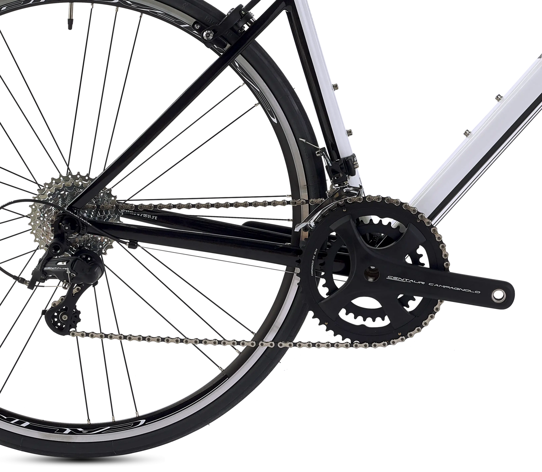 18 radios radiales de acero delanteros. 27 radios de acero con duplicación del radiado en el lado del cassette de piñones